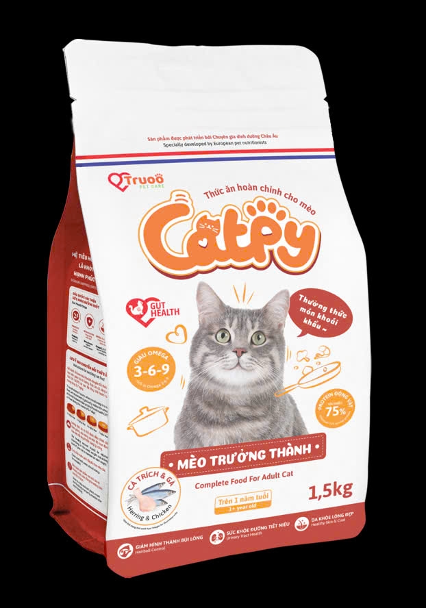 • Công thức độc đáo: Kết hợp tinh túy từ biển sâu và đồng cỏ, Catpy chứa lượng lớn protein từ cá trích và thịt gà, cùng các dưỡng chất thiết yếu như Omega-3, 6, 9, DHA, vitamin và khoáng chất.