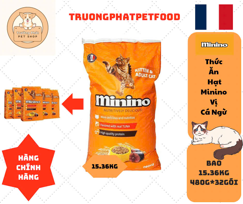 HẠT CHO MÈO MININO BAO 15,36KG (480G*32 GÓI)