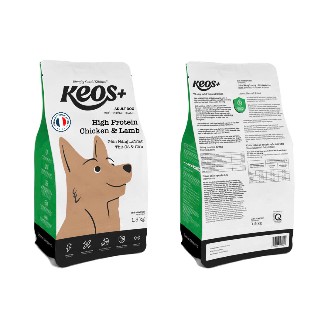 Những dòng chó năng động hoặc có kích thước cơ thể, cơ bắp lớn cần được cung cấp nhiều năng lượng hơn những dòng chó khác. Keos+ High Protein sẽ bổ sung năng lượng cho chó, giúp bé luôn đảm bảo dinh dưỡng để đáp ứng cho các hoạt động cơ bắp của mình.